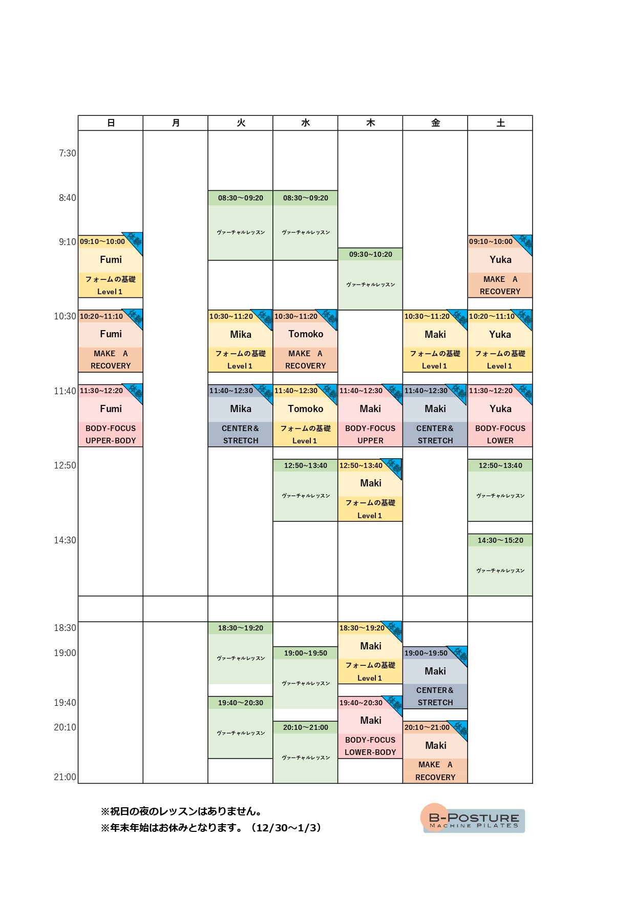 - バーチャルレッスンも同様になります。