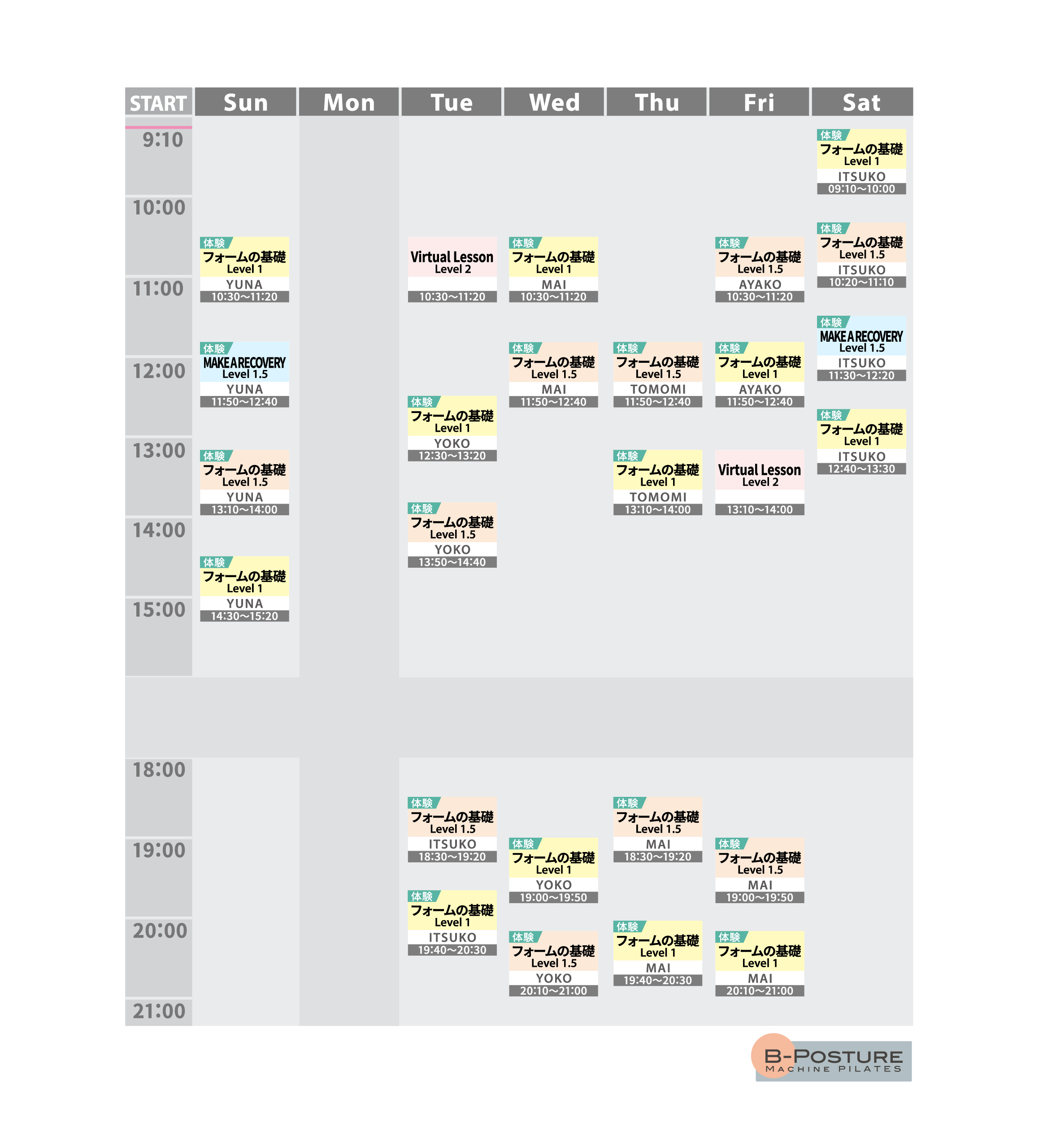 スケジュール REFORMER pilates STUDIO SCHEDULE