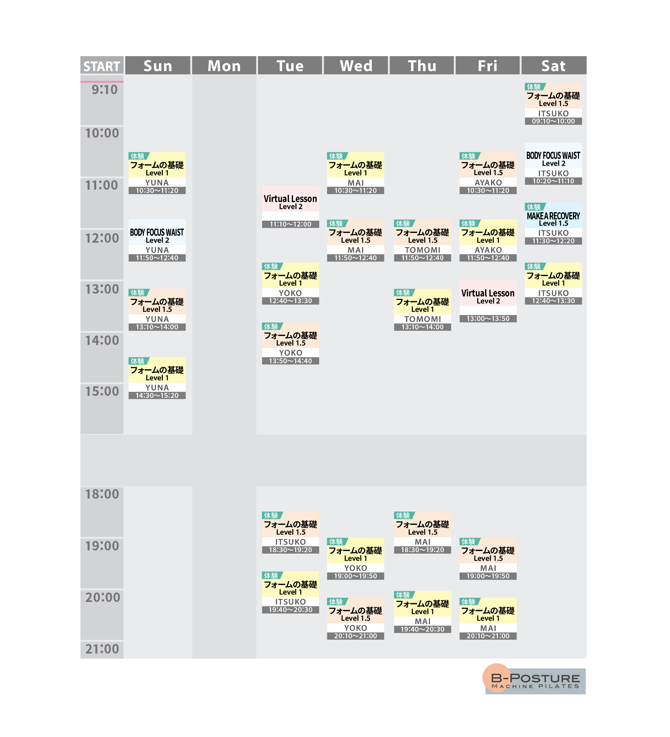 B-POSTURE 独自のレッスンスタイルを体験してください。 無料体験クラス