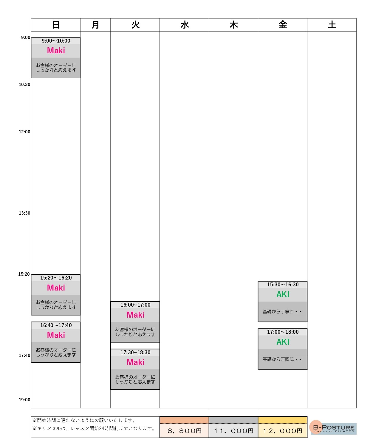 - ・1回のパーソナルレッスン金額は8,800円~11,000円(トレーナーによって違います)